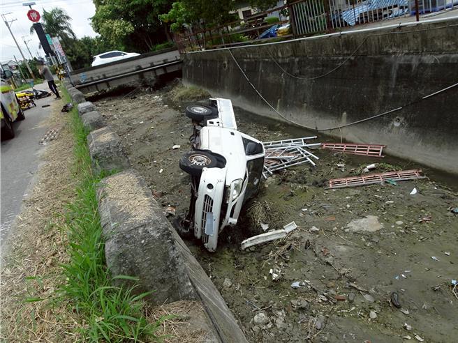 駕車與女機車騎士碰撞 小貨車翻落水溝